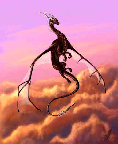 One thing I noticed was that the base-shadow being cast on the clouds where the dragon is situated is poorly defined. It kinda makes it look like the dragon is just pasted on to the background
