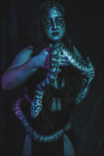 #alternative #alternativemodel #altmodel #blue #dark #dyed #goth #green #hair #make #mua #photography #portrait #snake #snakes #snakeskin #up #koffin #gothgoth #machinefairy