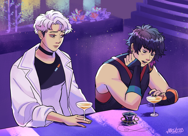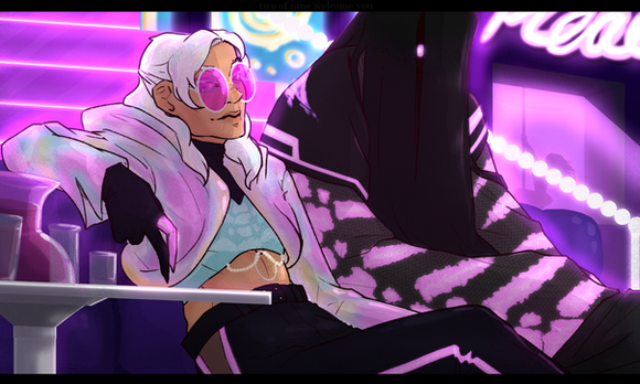 #alien #android #bar #digital #digitalpainting #futuristic #illustration #krita #neon #painting #party #pink #robot #scifi #terato