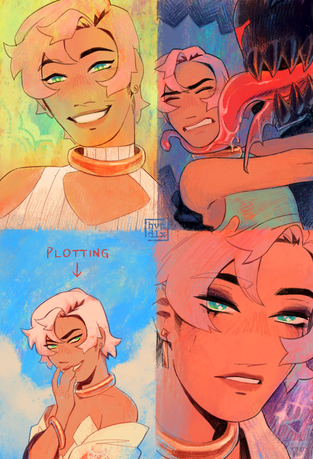 I've also been getting more and more comfortable with painting and keeping things kinda rough which makes me happy and also faster. it's a damn lineart brush that I like the most for painting lately lol........ but such is life.
