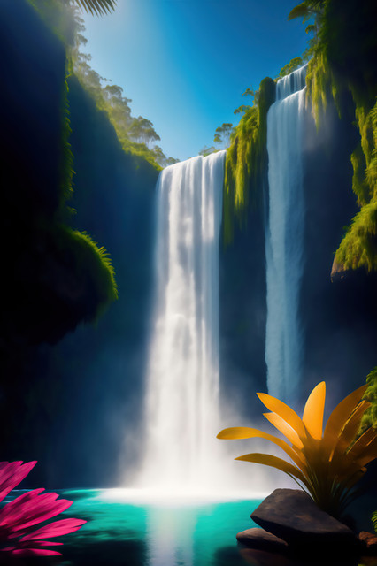 #blue #digitalart #digitalillustration #digitalpainting #green #jungle #landscape #mist #paradise #tropical #tropicalparadise #tropics #waterfall #waterhole #waterlandscape #waves #wet #generativeart #wavesocean #aiart #wavessplashing #aiartwork #aigeneratedart #generativeartwork #aigeneratedartwork