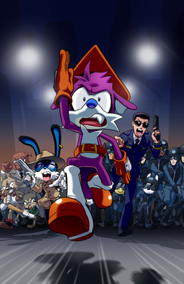 I wanted the background to look simple, like in some zany American cartoons. The colour of the sky a partially inspired by Batman: the Animated Series, where Gotham City tends to have red skies at night.