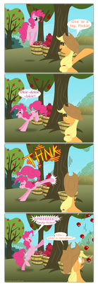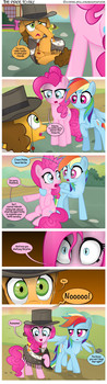 When you are running from a crazed, justice seeking, 4th wall breaking, hyper-active pink party pony, YOU DON'T HAVE TIME TO DEAL WITH SOMEPONY'S LAME JOKE!