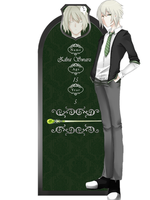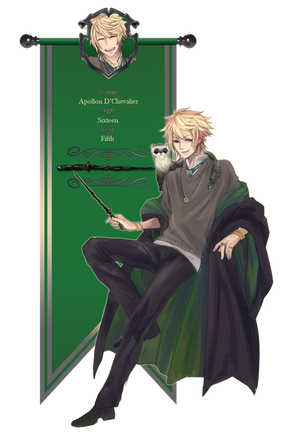 When he turned 11, a letter form Hogwarts arrived . He has waited for this day for so long. Finally he can go out side, study and find his dream. Since the school allows pet, he also brought Snow with him. He was sorted into the Slytherin by the hat for being a pure blood , an intelligent one coming from a noble family. He wasn't very surprised because of his self awareness. And with such a background, it's no wonder he was sorted into the Slytherin. He was not getting used to the environment very quickly, but after a while, he managed to addapt. He is now one of the cleverest students in year 3 but still doesn't make many friends because of his habit of being skeptical , act all high and mighty (which he is ) and barely show any emotions in front of strangers. He's very friendly and not such a moving ice cube when surrounded by animals though.