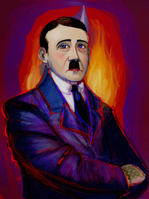 An image of Adolf Hitler surrounded by various springtime flora. The portrait of Hitler will be sketched and coloured roughly, with the intent for it to appear realistic and anatomically correct, as well as showing the folds of skin and signs of aging and gassing well. The aim is to allude to a type of symbolism between the beauty of the flowers and the harsh, sharp lines of the portrait and slowly deteriorating dictator close to the end of his life. The image will be titled “Springtime for Hitler”, identical to the title of the Mel Brooks musical piece, accompanied by singing and dancing. This “Springtime” originally was described as a time of opportunity and hope for the new leader, who was said to lead the nation to victory. Later, it was proved that springtime would not be so kind to the Fuhrer. Defeat drew closer until the day which Hitler committed suicide in the springtime of 1945. The flowers are present to represent a morbid beauty in the piece. This is supposed to be a portrayal of Hitler in his last days surrounded by a reminder of what his rule was meant to be, while his organic body wastes away.