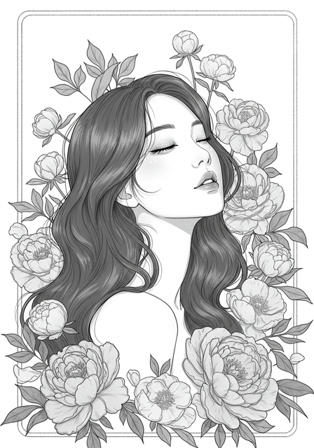 #portrait #digitalart #blackandwhite #cleanline #coloringbook #coloringpage #feminine #girl #illustration #japanesestyle #lineart #monochrome #printable #relax #simpledesign #sketchstyle #artpractice