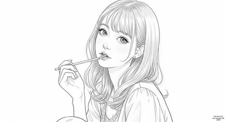 #digitalart #portrait #blackandwhite #cleanline #coloringbook #coloringpage #feminine #girl #illustration #japanesestyle #lineart #monochrome #printable #relax #simpledesign #sketchstyle #artpractice