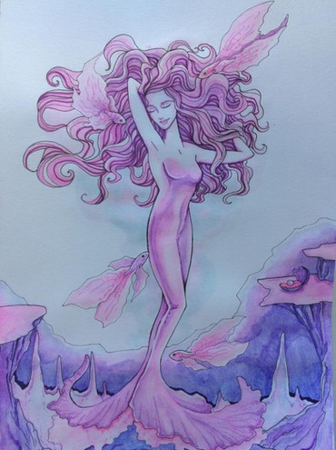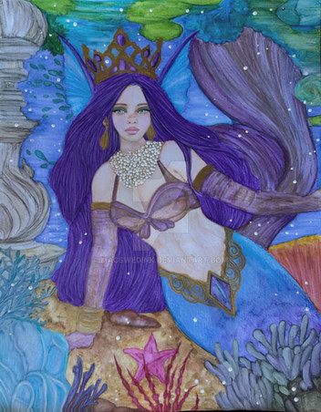 #fantasyart #traditionalart #portrait #princess #mermaid #beauty #blondebombshell #coloredpencil #purple #traditionaldrawing #watercolor