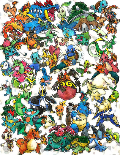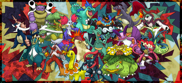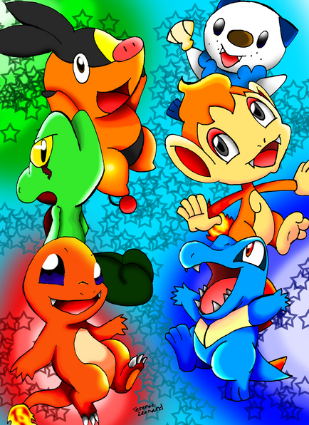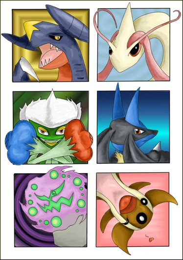 These are supposedly the main characters of a story that, someone here in deviantart made. This person asked me to do a couple of drawings of his Pokemon team. And this is the last picture he asked me to do, but it was a long, long time ago I just finished it this week, and I completely forgot what was I doing it for, until I submitted it
