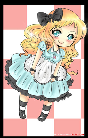 Alicia es genial! quien no la adora? es una preciosura! y te ha quedado muy linda, me encanta la pose y su expresion! >w< toda tierna! :3
