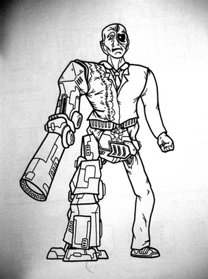 Head to big,right side is badly drawn,arm-claws are badly drawn.