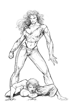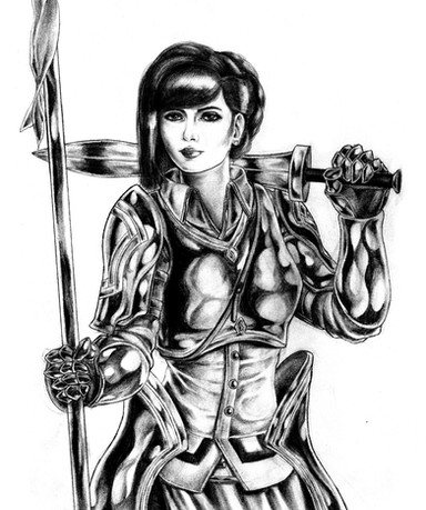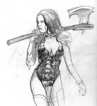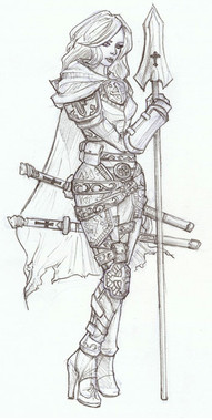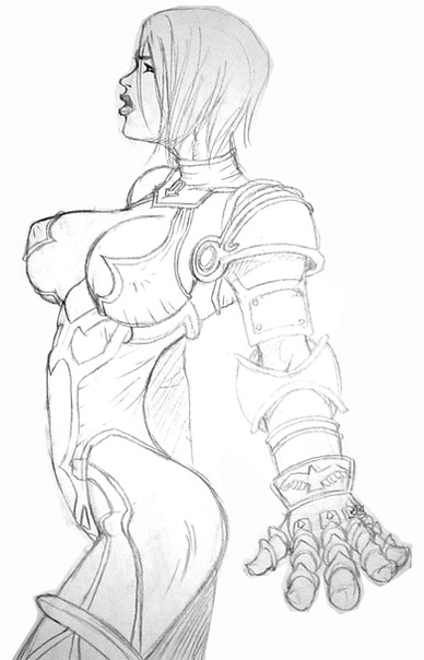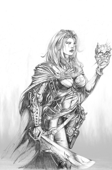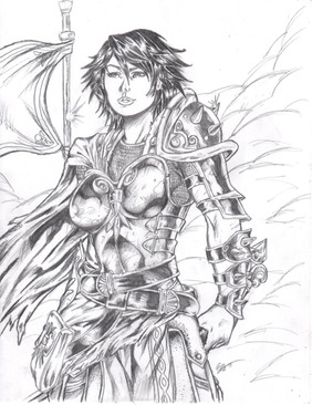 some mighty fine work, and not just this drawing... she looks pretty fucking badass, though her lack of armor in the midsection is kind of a weakness....... wicked stare on this bad mammajamma!! you gotta a nice portfolio goin' for ya'..... damn, your work is wicked....