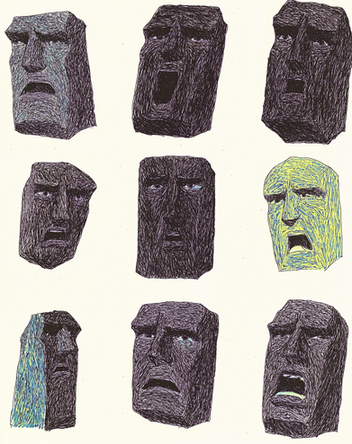 Freakishly-wonderful and beautifully-disturbing! Jeremy, I so enjoy the recurring motifs of the Zoo Heads and the antenna trees. Their hypnotized, calm gaze skyward fills me with a slight dread... what could it be? Or worse, is there no gaze at all, only No Thought? I'm listening to an appropriate soundtrack right now: "Laughing Quarter" by Autechre, with just a hint of ominous. Wonderful work, J.