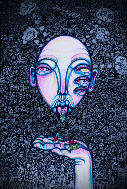 I love it, psychedelic and grounded. There's lots of personality to her, without taking away from the sheer amount of strange detail going on, for instance, that awesome background. Great work as always!