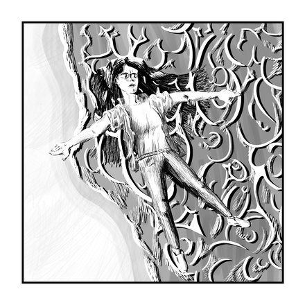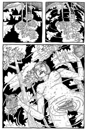 Miranda, 14x11″, pen, ink, markers, on bristol. Panels from a new comic.BTW: Dörfler is now available from Fantagraphics: www.fantagraphics.com/dorfler/