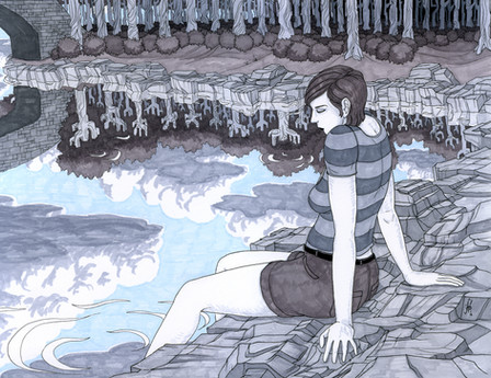 #baum #crouched #fantasy #jeremy #nature #pond #reflection #romance #seated #water #woman #madbaumer37 #comics