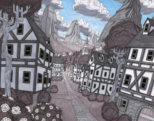 monolith, 14x11″, pen, ink, markers, on bristol. Panel from a new comic.BTW: Dörfler is now available from Fantagraphics: www.fantagraphics.com/dorfler/