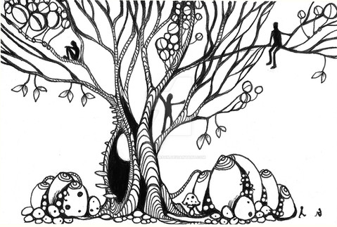 This piece makes me wonder many things, like which face the hands belong to, what is happening to the tree that is making it react so emotionally, and why there is such a multiplicity of emotions being experienced by a single being that is generally accepted as non-conscious to begin with (i guess there are those who believe in plant consciousness, but it isn't exactly a generally accepted fact)