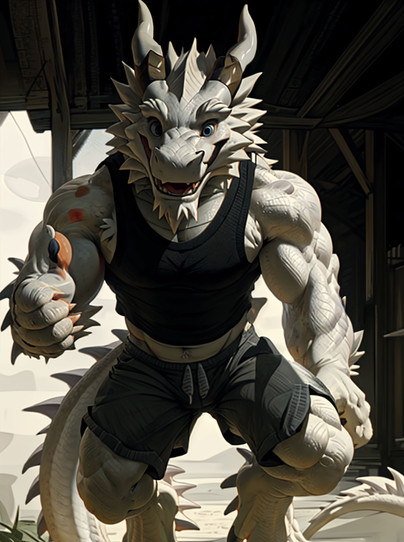 #ai #anthro #buffed #confident #dragon #easterndragon #exercise #furry #male #practise #shadowboxing #madbrook