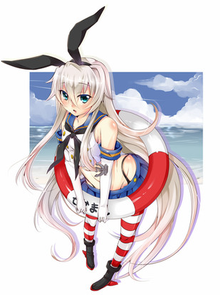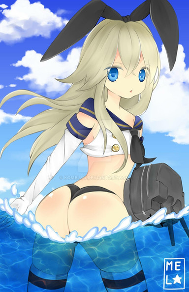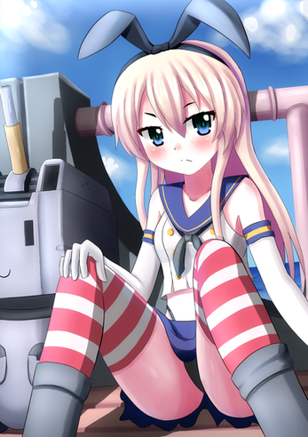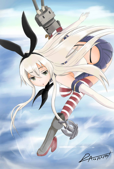 Shimakaze from an anime/game called Kantai Collection. - Basically a game where historic Japanese ships have spirits inside girls - hence the cannon-esque looking thing behind her.