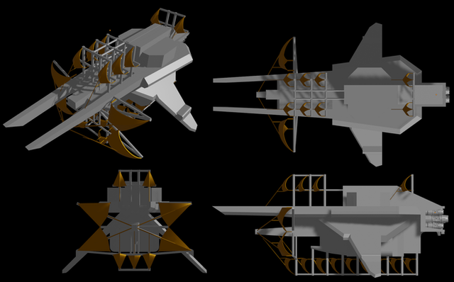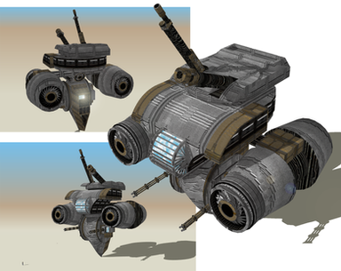 Armed with two particle projection rifles, which are themselves turreted (360 vertical, 20 horizontal), the Freedom Fighter is a fairly dangerous craft, excelling at harassing hostiles, providing cover fire, taking out enemy craft components and so on, essentially being a "sniping" craft.