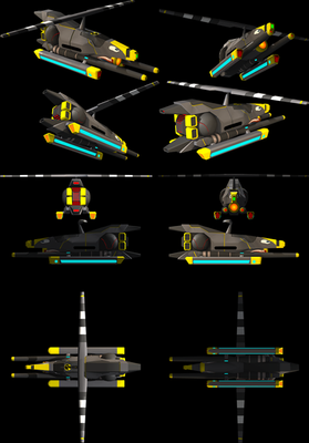 The freedom fighter is an air/space combat which uses hybrid thrusters, able to function both in air or space, the thrusters being plasma based.The freedom fighter's side dual thruster "casks" can be aimed, allowing the craft surprising mobility and even VTOL like function.