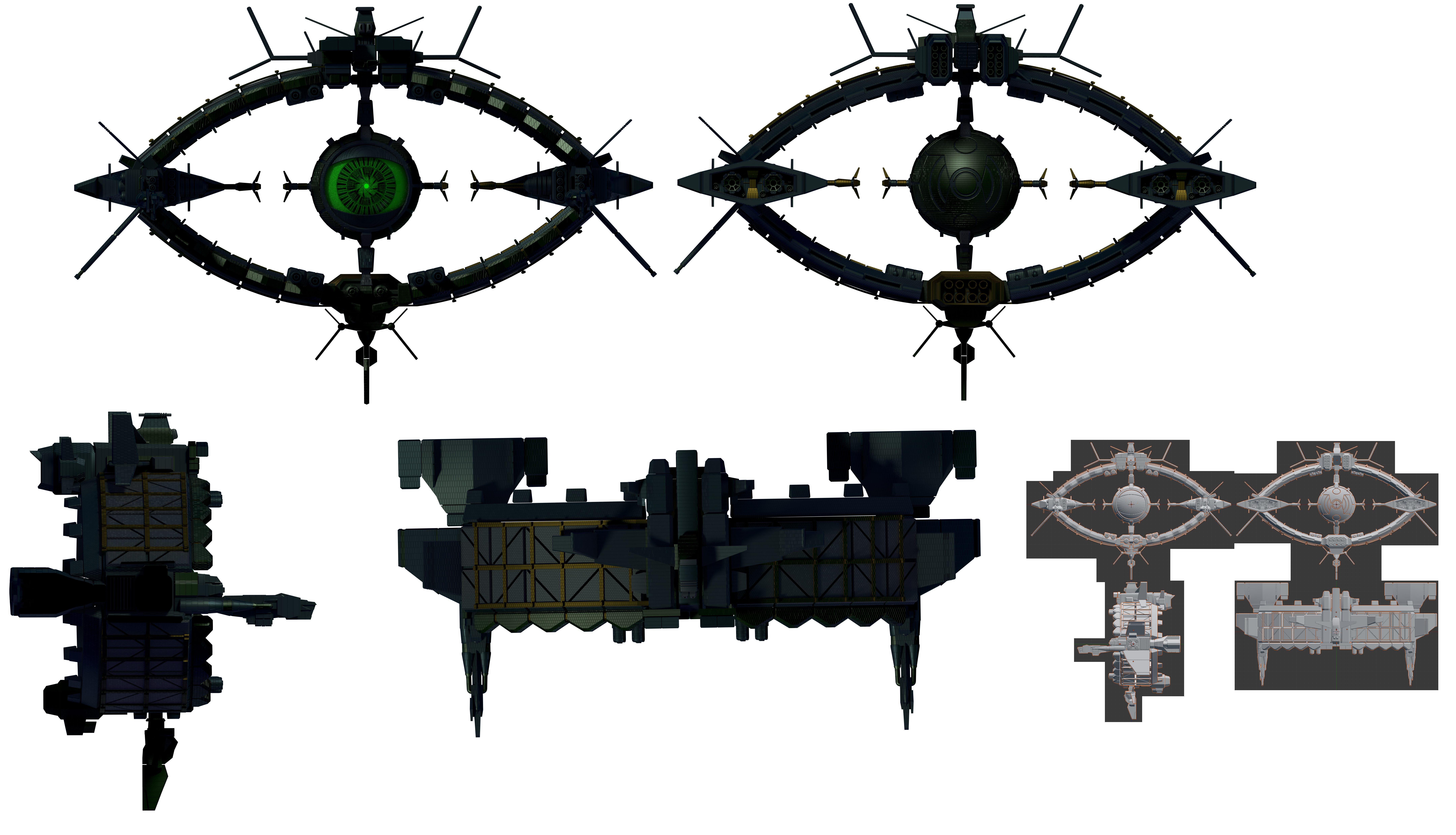 The side "blocks" at the sides of the control area are linear thrusters (rear) , gravitational drives (front) and houses the storage of the craft for fuel, ammo, energy charge and personnal belongings.