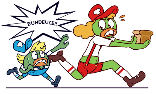 And uh, a little bit about her. Her name is Maddoo (since names make no sense in Pondgea). She's a huge nerd for the history and lore of Breadwinners. When SwaySway opened up tryouts to be a Breadwinner, she was really psyched about auditioning. Unfortunately she got choked up and never went for it. Because of this, she really respects Buhdeuce. She orders tons of bread everyday just to see him. Her favorite is double chocolate fun bread and she lives in Tree City!