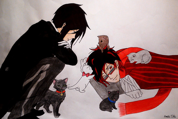 Black Butler cats! Kitten Ciel looks positively adorable, and Will, Undertaker, and Ronald look nice too!