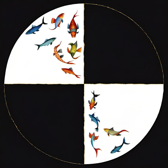 kind of MC Escher like, i love the colors and how it's split into three progressions, but it's pulled together by the fish and ladder. loverly dahlin, loverly.