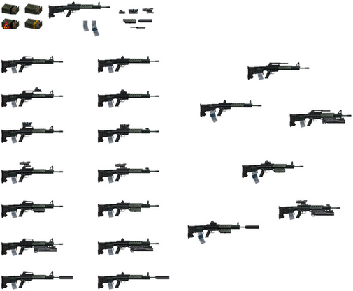 Again, edits from the true work by 'Blick Blanks'. Covers up the G3 variants (7.62x51 NATO) like:>Full-sized Battle Rifle (Left down):