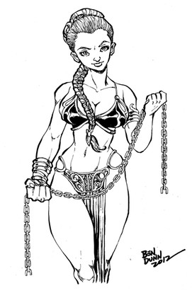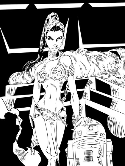 Just a quick ink to get back in the groove again.This one features Jessica Rabbit as every Star Wars Geek(Like me)as Slave Rabbit.