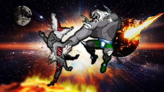 -Famous Comic Book Anti-heroes who were once ordinary men, but after a slew of bad luck came their way (Johnny's adopted dad Crash died in a Stunt gone wrong and Spawn himself died), they made a desperate deal with a demonic entity inspired by Satan (Malebolgia and Mephisto), who bonded their soul to a demon (Zarathos and L7-Leetha). They both served as Satan's pawn but eventually broke free and overthrew them as the King of Hell.