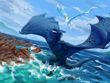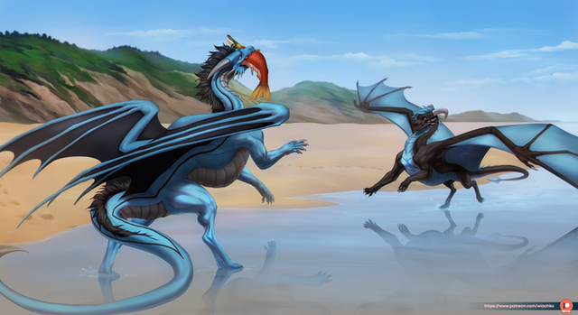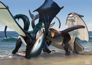 #attack #beach #dragon #fish #fun #illustration #water