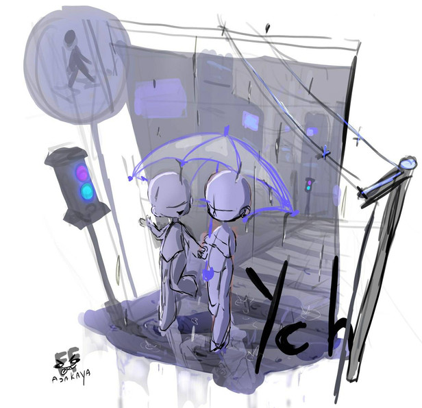 another YCH! 8Dthis time I wanted to try with raining and chibis, also added a smol pupper :3