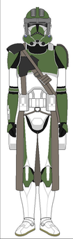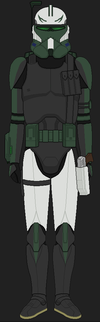 CC-1004 Commander Gree. I decided to redo Gree's look for Phase II. I never really cared for his armor that we saw in RoTS and liked what they did in Clone Wars, so I came up with a sort of hybrid of RoTS Phase II and Clone Wars Phase I. Originally had it with the green visor but I just didn't like the contrast with his main green color.UPDATE: Did some tweaks to the armor and updated the belt. 6/30/20