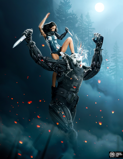 Free FallHydra is one of the mercenaries of future. Like a Lernaean Hydra in ancient mythology, she has a shiny belly and burns the enemies of her fiery breath. She devastates everything in her path, leaving no survivors. Beautiful and deadly.