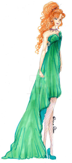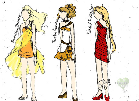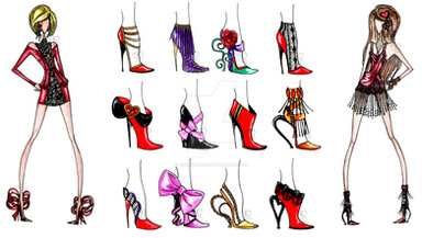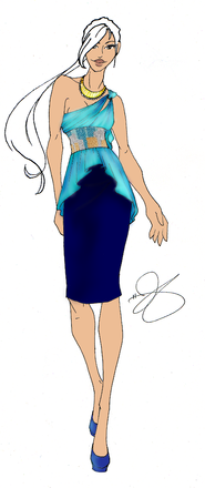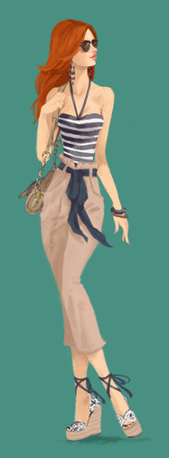 THOUGHTS:Basically, I looked at this shoe and was trying to decide if I should do something Grecian or something modern and lineblocky, inspired by the straps. So then I thought, "Why not both?" Hence the Grecian top and skirt drapery, and modern lineblocky skirt. I knew I had to give a summery, but slightly fancy dress to complement the casual elegance of the shoe...clearly it wouldn't go with a ballgown or cold weather outfit, but the shoe is still dressy enough to be above outfits that would sooner be paired with traditional plastic flip flops.