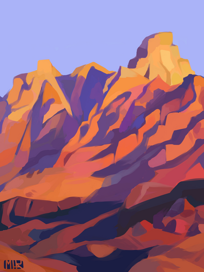 A little pixel gif I made of one of my favorite mountain formations <3I love the Catalinas so much.