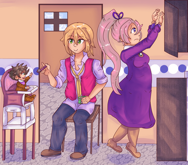 Very nice scene, I love to see Porom is making breakfast for her and Kamil, and that Kamil is already giving baby Lotte the food.