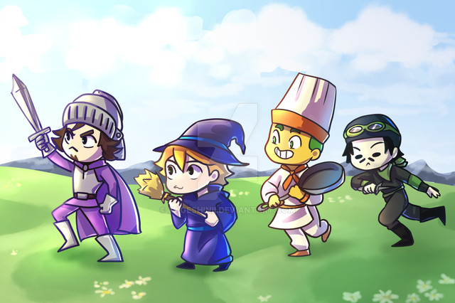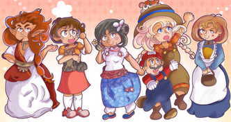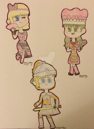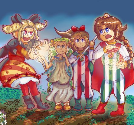 Still playing Miitopia (Switch port). I'm FINALLY near the end, yay.The other half of my 'team' consists of Kamil ('Harvest Moon: The Tale of Two Towns' / Chef), Porom ('Final Fantasy IV: The After Years' / Cleric), Palom ('Final Fantasy IV: The After Years' / Mage), and Archer (Warrior) -- all canon characters, save for Archer (whom is based off of my SO). C: