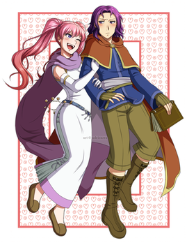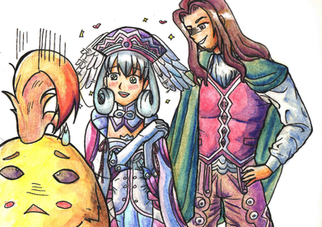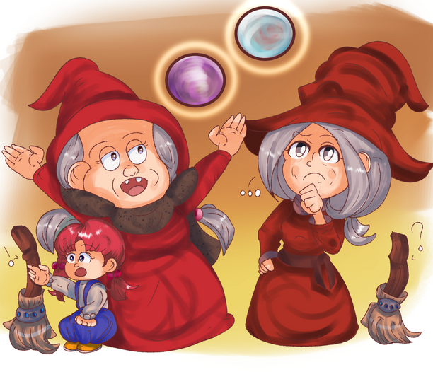 Random-as-heck doodle.I was playing Final Fantasy VI, and noted that Banon had the title of "Oracle." It made me think of Oracle (from Harvest Moon: The Tale of Two Towns) for some reason, and I couldn't help but think : "what would an argument of wits look like between the two? :0"