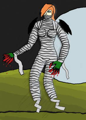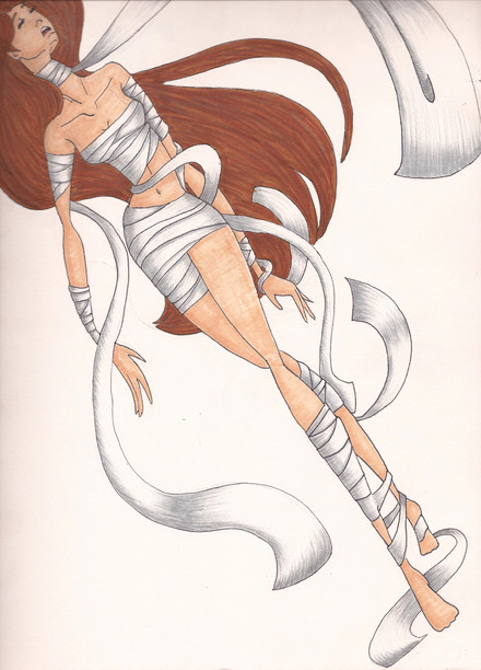 x.x!! those bandages musta taken you quite some time to draw!! - well done for perservering!! the swirls of myst work great :]