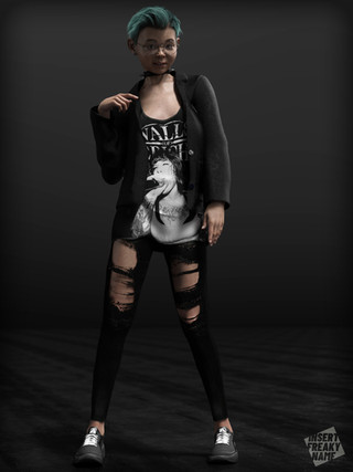 Not only does she rebel against the rules with her clothing but her body as well. Adorned with piercings and tattoos from head to toe. Despite having naturally beautiful dark hair, she bleaches and locs it up. She also loves to wear heavy makeup that takes hours out of her days. After all she’s an artist and her body is a canvas. Mari’s favorite place to hang out is at the tattoo shop. Where she’s working towards an apprenticeship for her dream job of being body mod artist. During the slow days at the shop, she’s found hanging out with her friends. Engaging in heated discussions with Thea which sound like arguments amongst the others. She’s a night owl with a love for hard rock and metal.