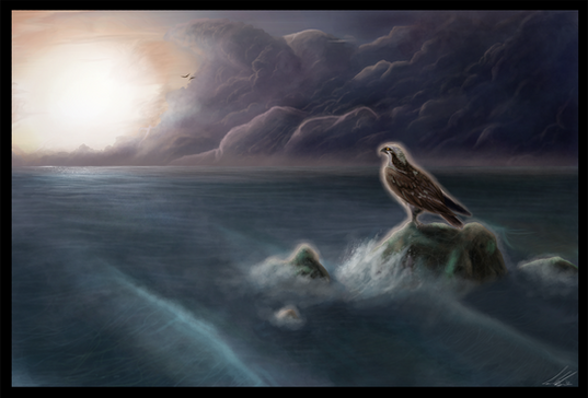And what a hard choice it was. But I like the darkness of this piece, and the way the detailed strokes on the bird contrast with the blurred strokes of the background.