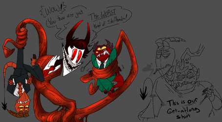 Angry, angry, chains rattle and hold them back to the wall. It hurts, you told them. Even with all of your will power, you won't resist the urge to burst out into tantrum.Their chest heaves and spills out it's hot, black vitriol. And with no eyes to see, they thrash violently into all directions; take caution when retaliating.