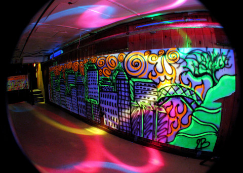 OH MY GOD! I am totally investing in some flourescent paints and crafts :3 I am inspired to make my house as insanely wackey as possible thanks to this photo. Thanks x)