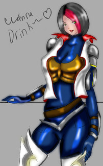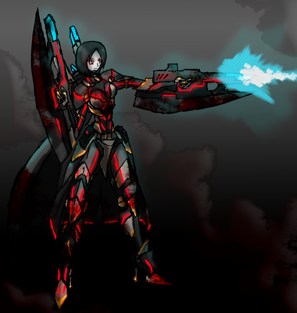 #armor #cyberpunk #girl #laser #mask #ponytail #red #sai #shadowrun #simple #spear