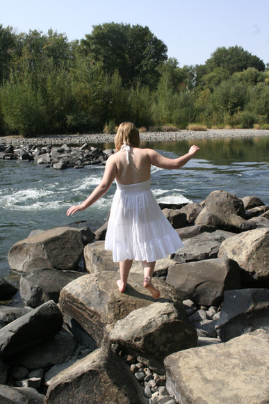 Great capture, the use of her red summer dress, the perspective and the contrast of the dress to that of the water. Why did she hate this? Wow...nicely done.
