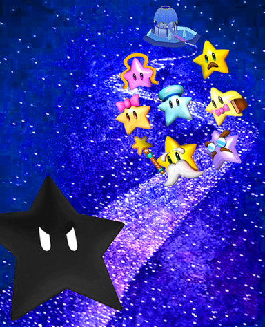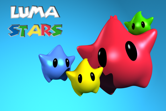 Anyway, we have all the different power stars that have appeared throughout the games (that I can Remember anyway), The classic Yellow Star, the Red, Green, and Grand stars introduced in Super Mario Galaxy, and the infamous Dark Star. (Not the one from the latest Mario and Luigi RPG. Older players will remember their debut in the Mario Party games.) Ironically enough, I had the most trouble doing the Dark Stars. It seems I should have gone more for gold rather than yellow too as the yellow and Grand stars don't pop out the way the others do, even though they're made exactly the same way. Available as a wallpaper size if you download it, and I'll be setting it up as a print soon.